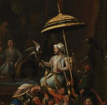 Falconry during the Mughal period of King Akbar 16th-17th cent. Darbhanga Museum Bihar India