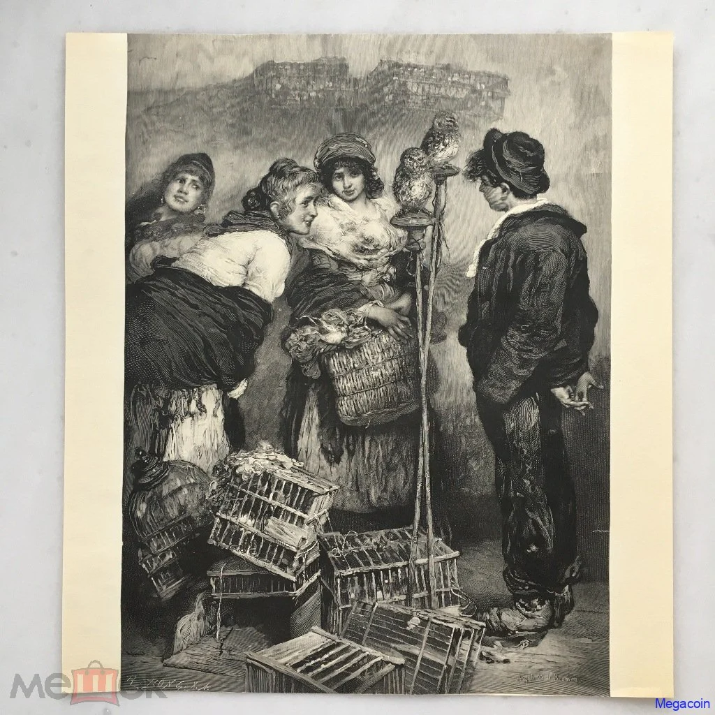 Two owls on perches on painting by Italian artist Angelo Dall'Oca Bianca (1858-1942) made in 1895