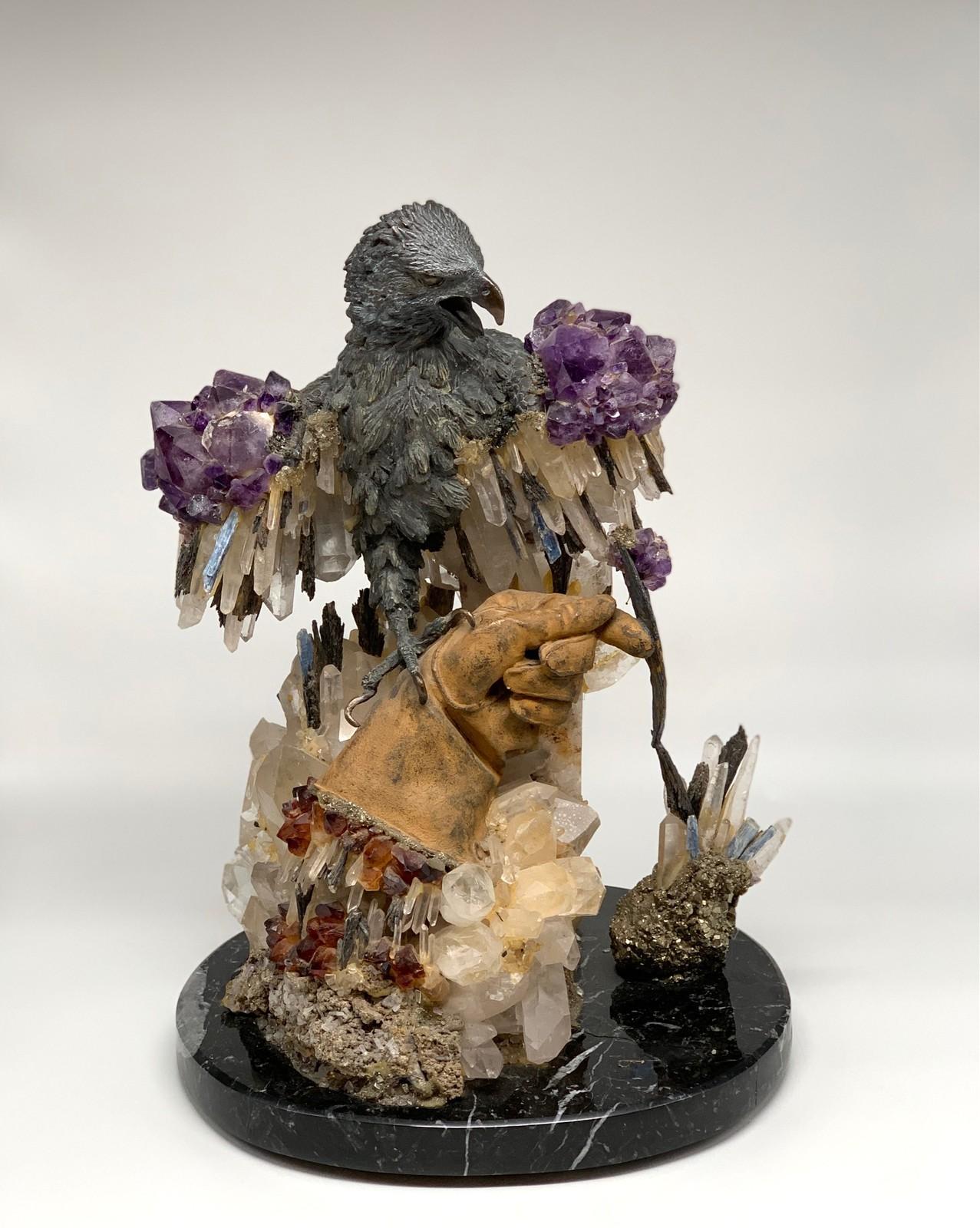 Vintage Style Falconer Man Figure With Falcon Figurine Statue Pottery Decorative